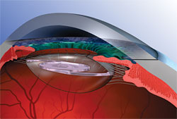 Multifocal Lenses to Treat CataractsWhen you have a cataract, the lens of your eye becomes cloudy. Light cannot pass through the lens easily, and your vision becomes blurred. During cataract surgery, the ophthalmologist (Eye M.D.) removes the cloudy, natural lens and replaces it with a clear, artificial lens called an intraocular lens (IOL). The IOL helps your eye regain its focusing ability and allows you to see clearly again. The most common type of IOL is the monofocal or fixed-focus IOL. The monofocal lens helps you attain clearer vision at one distance. Note that eyeglasses and contact lenses are still required in order for you to see clearly at all ranges of distance. Another type of IOL is the multifocal IOL. The multifocal lens has several rings of different powers built into the lens. The part of the ring you look through will determine if you can see clearly at far, near, or intermediate distances. Implanting an IOL takes about 20 minutes and is an outpatient procedure. In addition to a preoperative eye exam, your eye surgeon will take some measurements of your eyes and will give you topical or local anesthesia. The surgeon makes a few small incisions close to the edge of the cornea and then inserts a small, ultrasound instrument to break up the center of the eye’s natural lens. The lens is then vacuumed out through one of the incisions. The surgeon folds and inserts the IOL through the same incision. These incisions are usually self-sealing, requiring no stitches. Once implanted, a multifocal or accommodative IOL allows you to focus on near or distant objects. Risks associated with implanting IOLs include overcorrection or under-correction, infection, increased floaters, retinal detachment, dislocation of the implant, halos, glare, dry eye, decreased contrast sensitivity, clouding of a portion of the IOL, and loss of vision. If you are going to have cataract surgery, you and your ophthalmologist should discuss which IOL may be best for your vision needs.